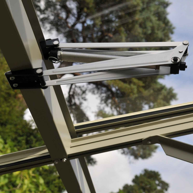 The Additional Louvre Greenhouse Vent Has 5 Blades with a Simple Lever to Open and Adjust to Control Greenhouse Temperature. the Vent is Powder Coated in Antique Ivory to Match the Greenhouse. Sold By:Harrod Horticultural