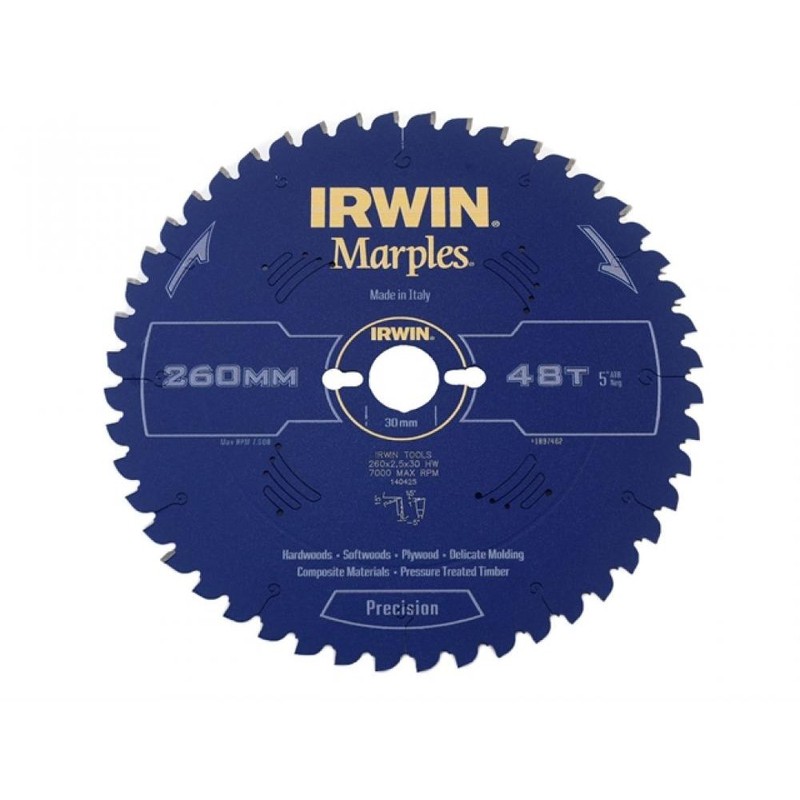 Buy Irwin Marples Circular Saw Blade 260 x 30mm x 48T ATBNeg M Online - Workshop Equipment