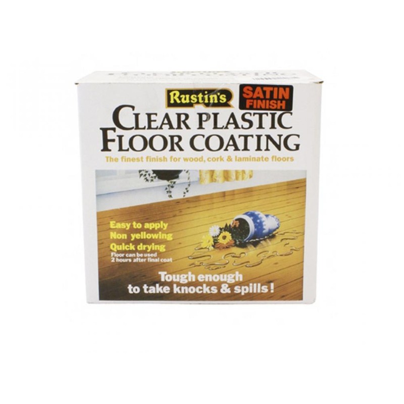 Buy Rustins Plastic Floor Coating Satin 4 Litre online price £109.09 great products from Paint. Rustins Clear Plastic Floor Coating Kit is a two part cold cure lacquer with excellent adhesion and durability. Almost colourless and will not craze or yellow on ageing. Resistant to scratching, abrasion, most solvents, weak acids and alkalis. Can be applied to wood, cork, chipboard, MDF, laminates, slate and stone. Re coatable after 1 1.1/2 hours, floor can be used 2 hours after last coat has been applied.Rustins Clear Plastic Floor Coating Kit Satin. Size: 4 Litre.. Product Type: DIY Paint DIY Wall & Floor Rustins, plastic, floor, coating, satin, litre. Sold By: My Tool Shed