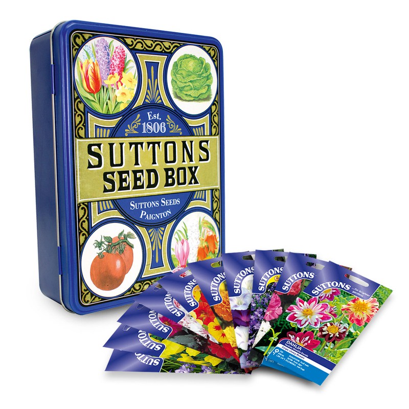 Seed Tin with Flower Seed Featuring a Beautiful Design from the Suttons Archives, This Quality Metal Tin Has Plenty of Space for Storing Your Favourite Seed Varieties. Includes 10 Flower Seed Varieties! Includes: Dahlia Seeds Yankee Doodle Dandy Geranium F2 Seeds Super Hybrid Mix Lobelia Seeds Crystal Palace Poppy Seeds Field Poppy (rhoeas) Sweet Pea Seeds Sublime Scent Mix Marigold French Seeds Boy O Boy Mix Nasturtium Seeds Little Gem Mix Agastache Seeds Liquorice Blue Sweet Pea Seeds Old Fashioned Scented Mix Sold By:Suttons