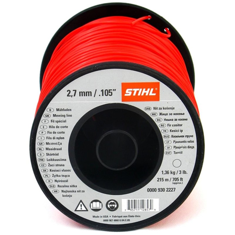 Stihl 2.7mm Diameter Square Cutting Line in a 221 Metre Pack. Suitable for Brushcutters, Grass Trimmers and Grass Strimmers. Approx Weight 3lb.material: Polyamide Plastic, Abrasion Resistant, Melt Proof Sold By:Lawn Mowers UK
