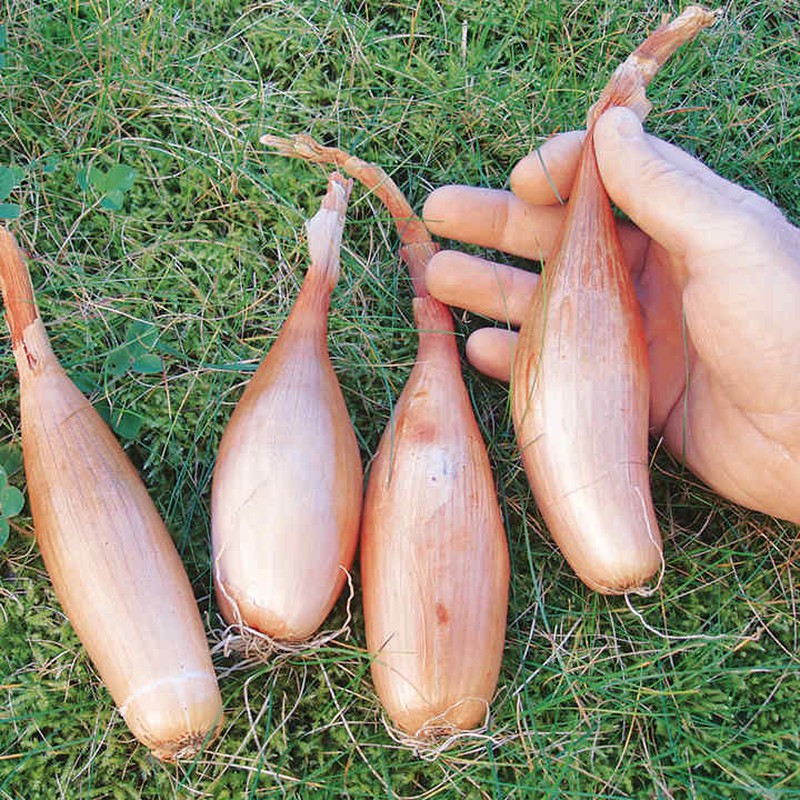 Delicious, Large, Elongated Shallot Onion Hybrid Type Bulbs That Are Brown Skinned with a Pinkish Tinge. Best Grown in a Sandy, Well Drained Soil. Popular with Tv and Michelin Starred Chef As It is Easy to Peel and Sliceplus Retains Its Flavour Well when Cooked. Sold By:Suttons